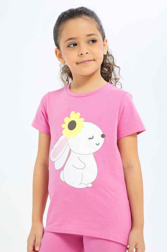 تيشيرت بطبعة أرنب باللون الوردي للبنات الصغار