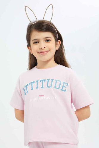 تيشيرت واسع باللون الليلك للبنات الصغار
