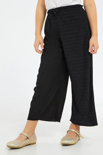 بنطلون باللون الأسود مجعد للبنات الصغار