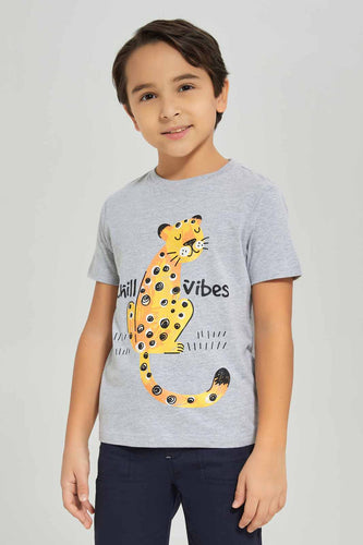 تيشيرت بطبعه نمرباللون الرمادي للأولاد الصغار