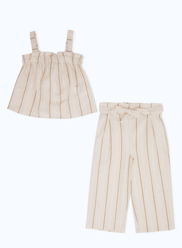 طقم مخطط باللون البيج لللبنات حديثي الولادة (قطعتين )