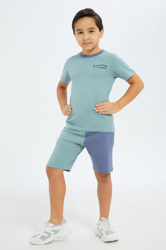 طقم تيشيرت وشورت باللون الأزرق للأولاد الصغار (قطعتين)