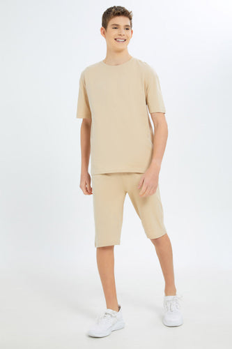 طقم رياضي باللون البيج للأولاد الكبار (قطعيتن)
