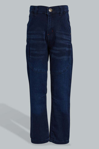 Navy Knitted Jean For Boys جينز محبوك باللون الكحلي للأولاد الصغار