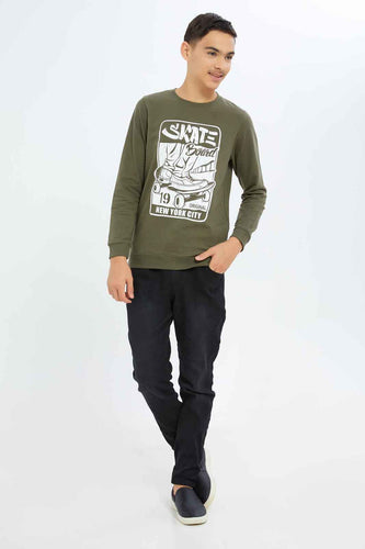 بنطلون جينز زيتي للأولاد الكبار