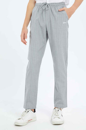 بنطلون مخطط سهل الارتداء باللون الرمادي للأولاد الكبار