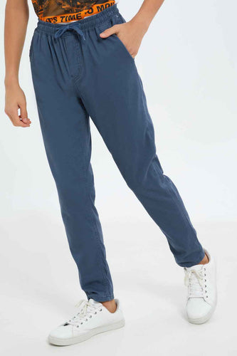 بنطلون كاجوال بخصر مطاطي باللون الزيتي للأولاد الكبار