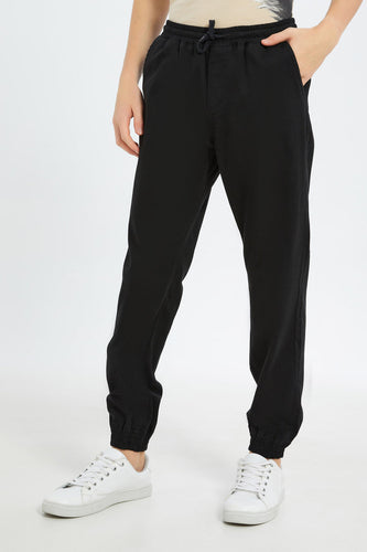 بنطلون رياضي بخصر مطاطي باللون الأسود للأولاد الكبار