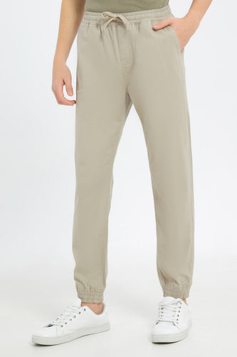 بنطلون رياضي بخصر مطاطي باللون البيج للأولاد الكبار