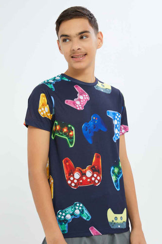 تيشيرت باللون الكحلي مطبوع للأولاد الكبار