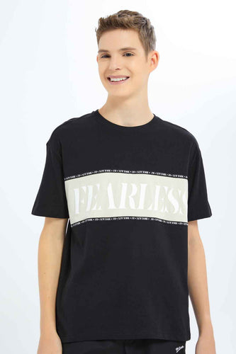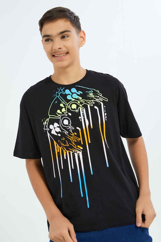 تيشيرت باللون الأسود مطبوع للأولاد الكبار