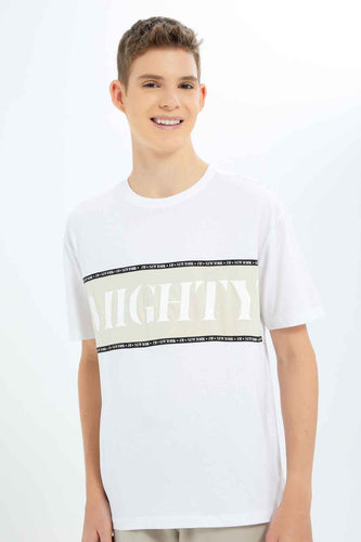 تيشيرت واسع مطبوع باللون البيج للأولاد الكبار