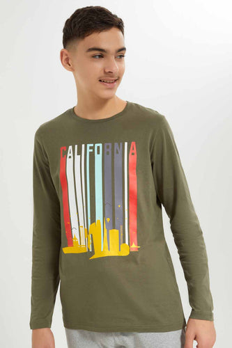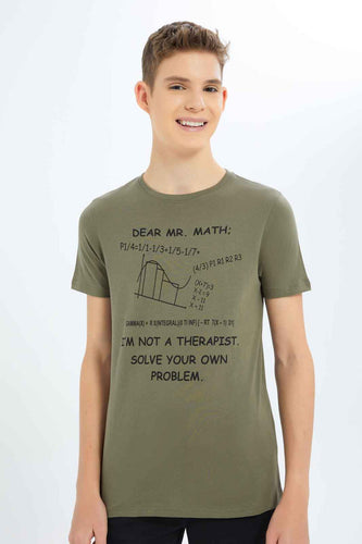 تيشيرت زيتي مطبوع للأولاد الكبار