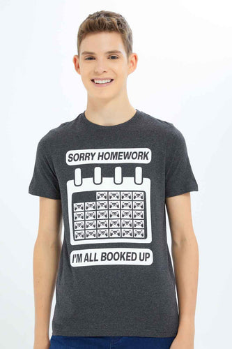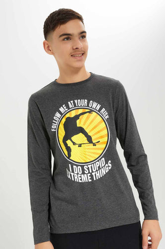 تيشيرت رمادي داكن مطبوع للأولاد الكبار