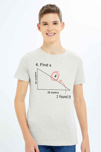 تيشيرت باللون الرمادي بطبعة للأولاد الكبار