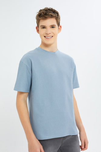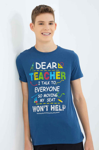 تيشيرت مطبوع باللون الأزرق للأولاد الكبار