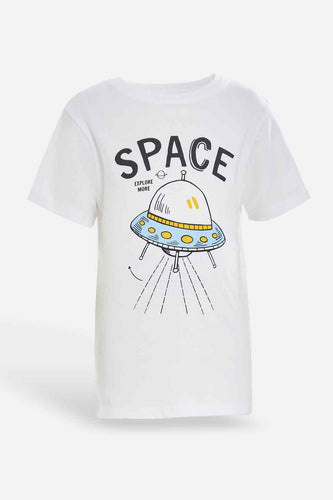 طقم تيشيرتات بطباعة باللون الأبيض والأزرق للأولاد الصغار (قطعتين)