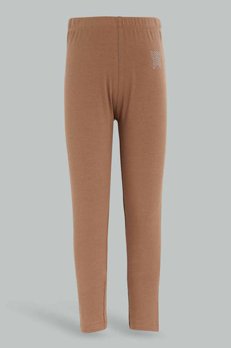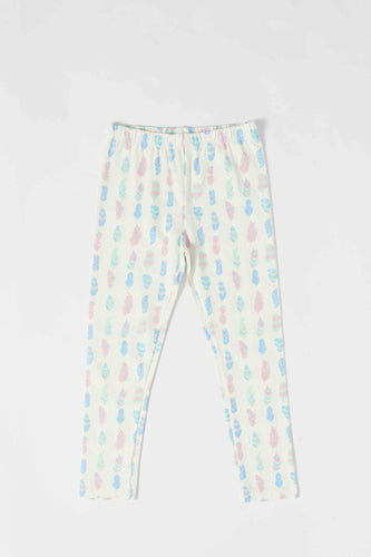 ليجنجز بطبعة باللون الكريمي للبنات الصغار