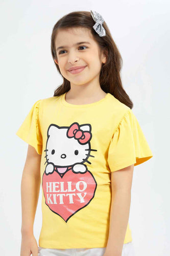 تي شيرت باللون الأصفر مع طبعة هالو كيتي للبنات