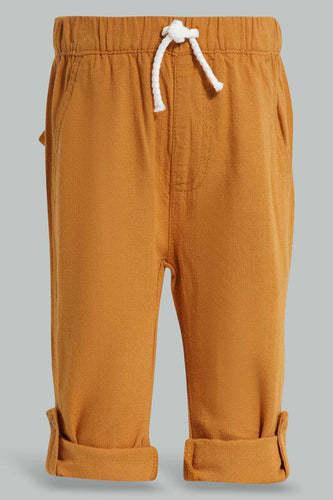 بنطلون بخصر مطاطي باللون البني للأولاد الرضّع