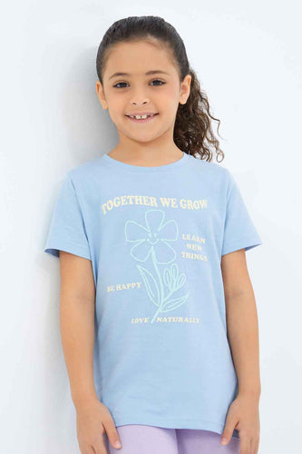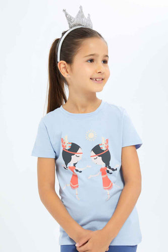 تيشيرت باللون الأزرق بطبعة للبنات الصغار