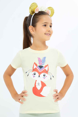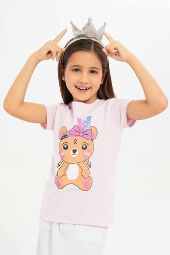 تيشيرت مطبوع باللون الوردي للبنات الصغار