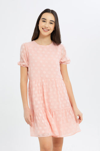فستان بأكمام قصيرة باللون الوردي للبنات الكبار