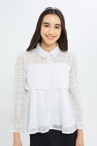 بلوزة بأكمام كشكش باللون الأبيض للبنات الكبار