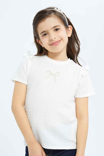 تيشيرت مزين بجيب ترتر باللون العاجي للبنات الصغار