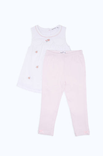 طقم مطبوع باللون الأبيض للبنات الأطفال