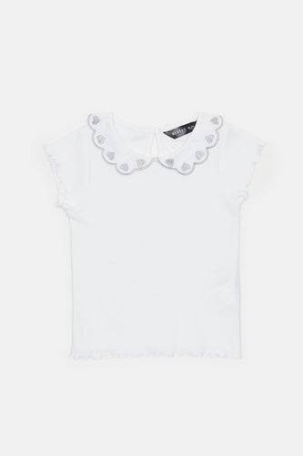 بلوزة بياقة مطرزة باللون الأبيض للبنات حديثي الولادة