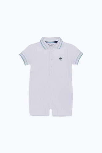 بولو رومبرسوت باللون الأبيض للأولاد حديثي الولادة