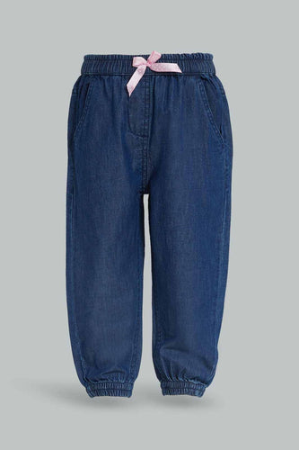 جينز باللون الكحلي بخصر مطاطي للبنات الأطفال