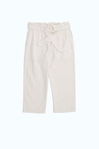 بنطلون بيج بخصر مطاطي مع حزام للبنات الرضّع