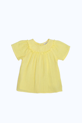 بلوزة باللون الأصفر مزينة للبنات الرضع