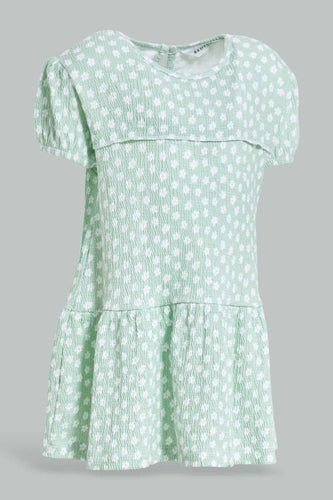 فستان باللونا لأخضر بطبعة أزهار للبنات الرضّع