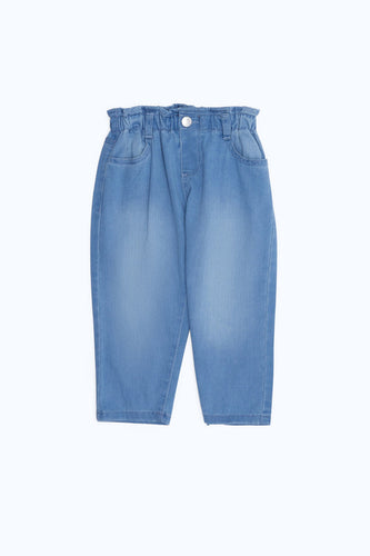بنطلون جينز فضفاض بجيوب باللون الأزرق للبنات