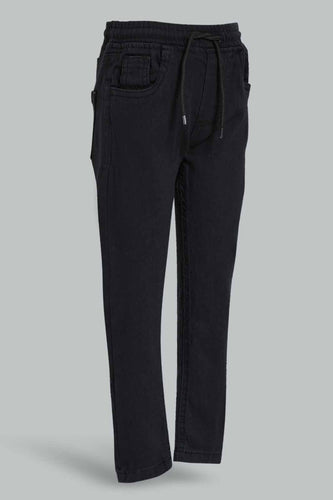 بنطلون جينز أسود بخصر مطاطي للأولاد الصغار