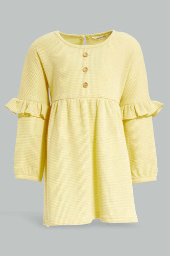 فستان بملمس بارز باللون الأصفر لحديثي الولادة
