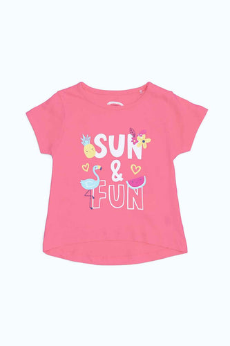 تيشيرت باللون الوردي مطبوع للبنات الرضّع