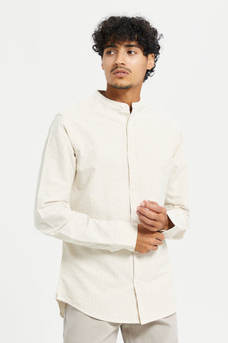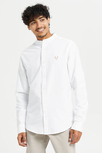 قميص بياقة ماندارين باللون الأبيض للرجال