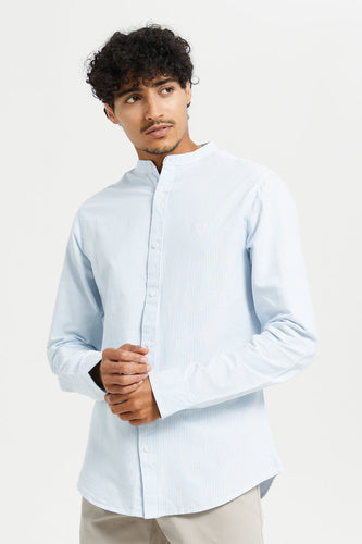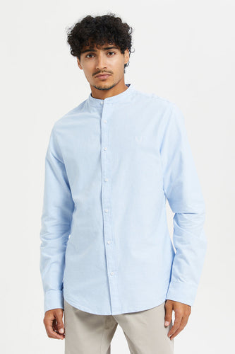 قميص بياقة ماندارين باللون الأزرق للرجال