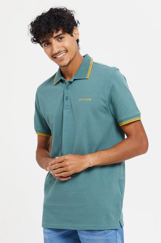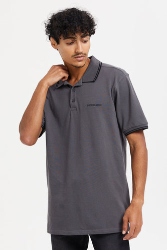 قميص بولو مطبوع باللون الرمادي الداكن للرجال