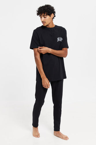 طقم بيجامة مطبوع باللون الأسود للرجال (قطعتين)