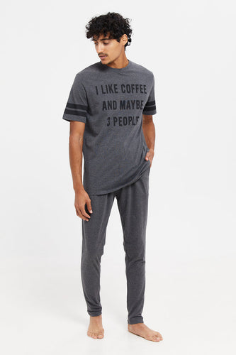 طقم بيجامة مطبوع باللون الرمادي للرجال (قطعتين)
