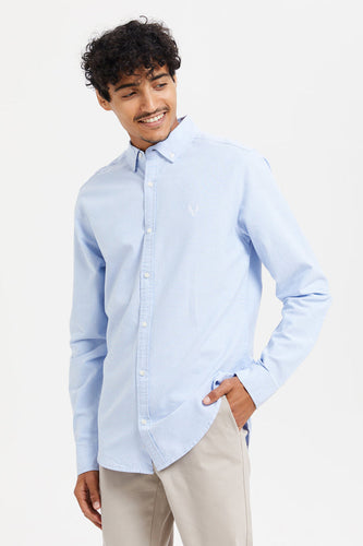 قميص أوكسفورد بأزرار باللون الأزرق للرجال