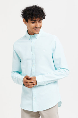 قميص أوكسفورد بأزرار باللون الأخضر الفاتح للرجال