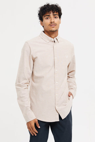 قميص أوكسفورد بأزرار باللون البيج للرجال