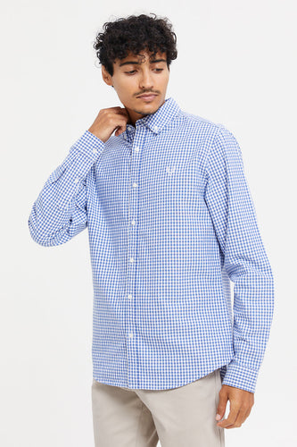 قميص أوكسفورد بكاروهات باللون الأزرق للرجال