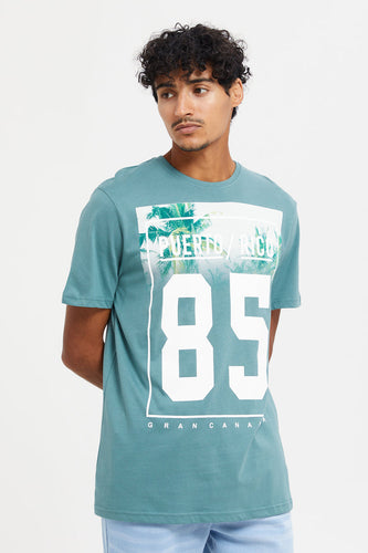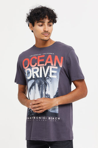 تيشيرت مطبوع باللون الرمادي الداكن للرجال